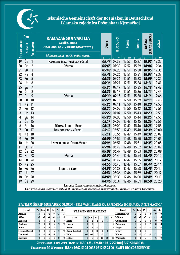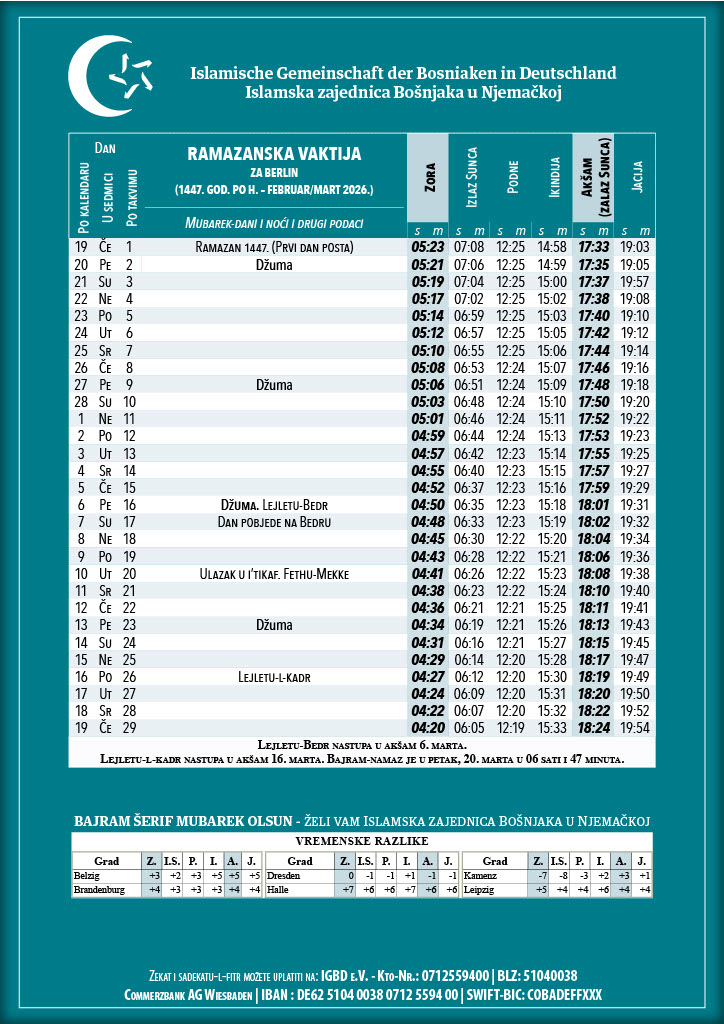 Preuzmite ramazansku vaktiju za svoju pokrajinu u .pdf formatu.